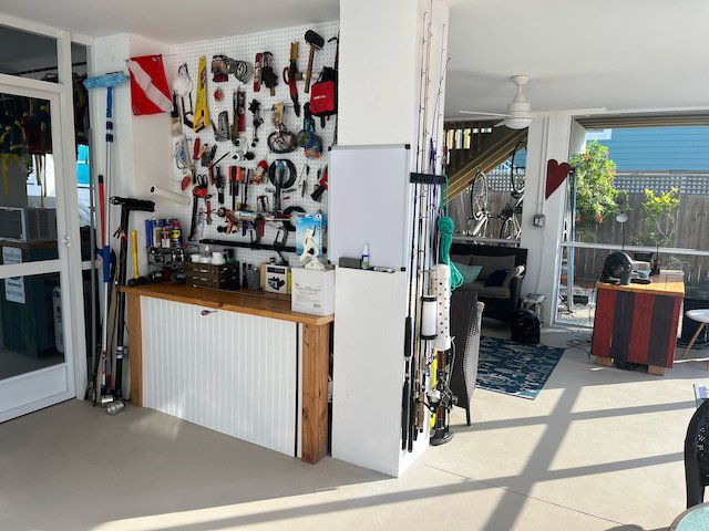 Here we are in our house approximately 40 days, and two months come Christmas, and we’re still settling in: building shelves, filling peg boards, hanging art, ordering shades, unpacking boxes, organizing tools, and fishing gear onto other peg boards, but we are just about done